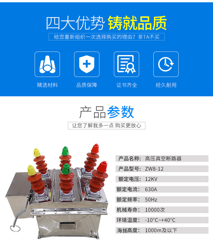 产品中心 户外智能真空断路器 华仪户外柱上1OKV高压分界开关ZW8-12交流真空断路器不锈钢壳体